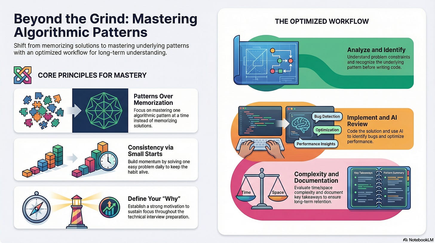 This experience taught me that I needed a different approach. Instead of rushing, I now focus on mastering one pattern at a time, understanding the pattern. My goal is to become confident enough to solve any problem within a specific pattern.